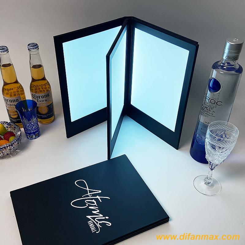 Recharageable Illuminated LED Leather Menu Cover A4 Size 2-Page Backlit Hotel Drinklist