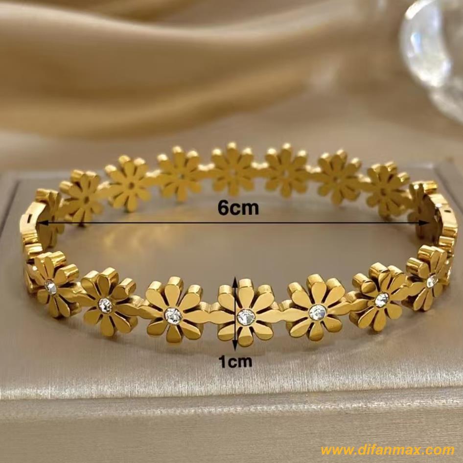 Diamond-encrusted Daisy Titanium Steel Bracelet